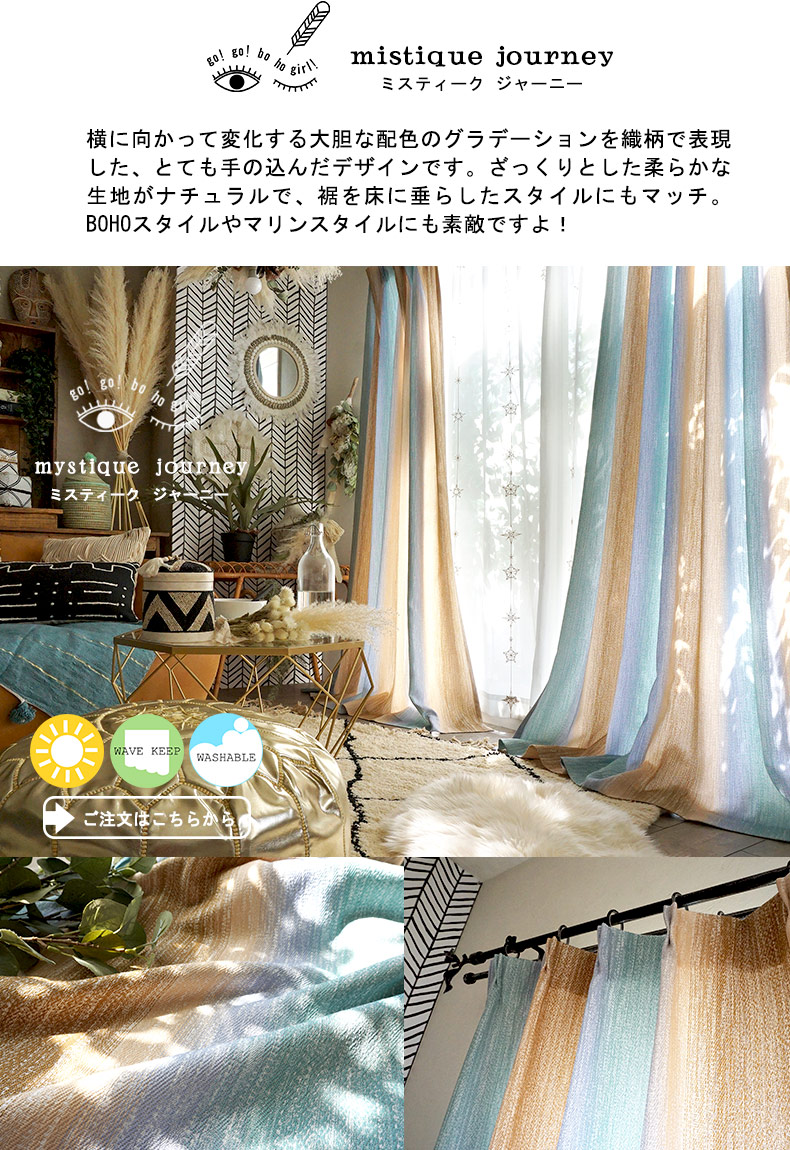 びっくりカーテンのプライベートブランド「go! go! bo ho girl!」に収録されている織柄のグラデーションカーテン。