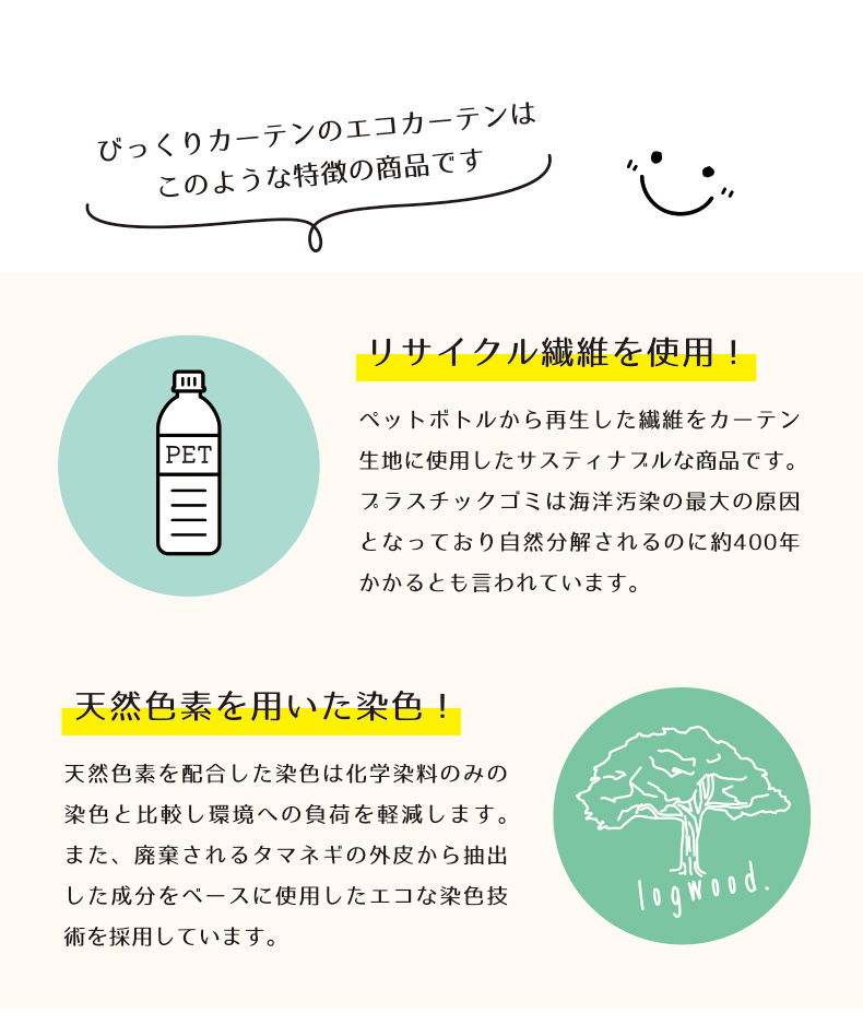 ▼ペットボトルの再生繊維を使用した環境に優しいカーテンシリーズ!