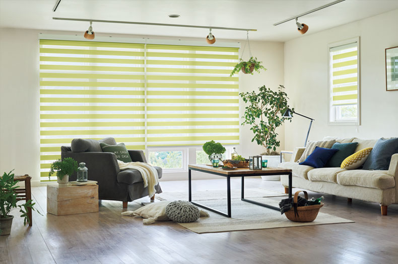 ボーダー柄の様な見た目がスタイリッシュな調光ロールスクリーン「デュオレ」。