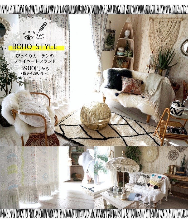 ■ 当店オリジナルデザインBOHOスタイルカーテン【go! go! BO HO GIRL!】