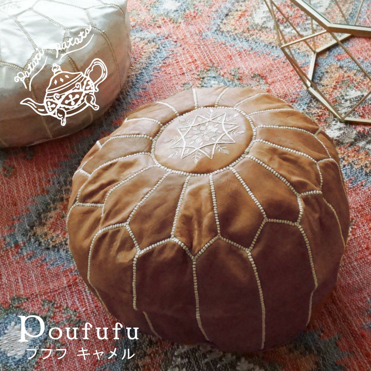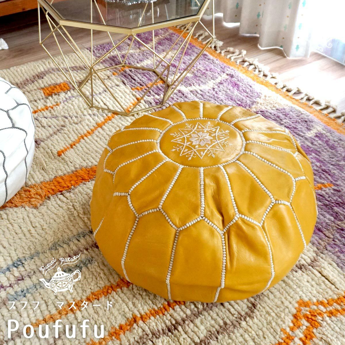 他の画像を見る patati patata モロッコから直輸入!山羊の革のプフ<プフフ ゴールド> 販売価格 ¥ 13,090 税込 山羊の革を使ったプフ 在庫切れ 再入荷お知らせ お気に入りに登録する