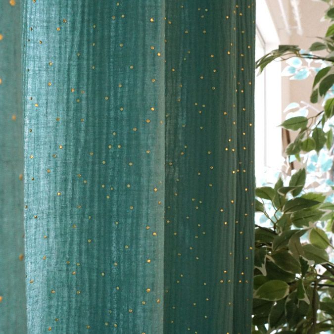他の画像を見る 天然素材 フラット仕様 非遮光 【BO HO GIRL!】コットンガーゼ素材にゴールドのデューを散りばめた、全く新しい感覚のふわふわカーテン <BLISTAR-ブリスター グリーン->※フラット縫製 販売価格 ¥ 6,380 税込 ボヘミアンを極める!究極にかわいいダブルガーゼのふわふわナチュラルカーテン 詳細を見る お気に入りに登録する