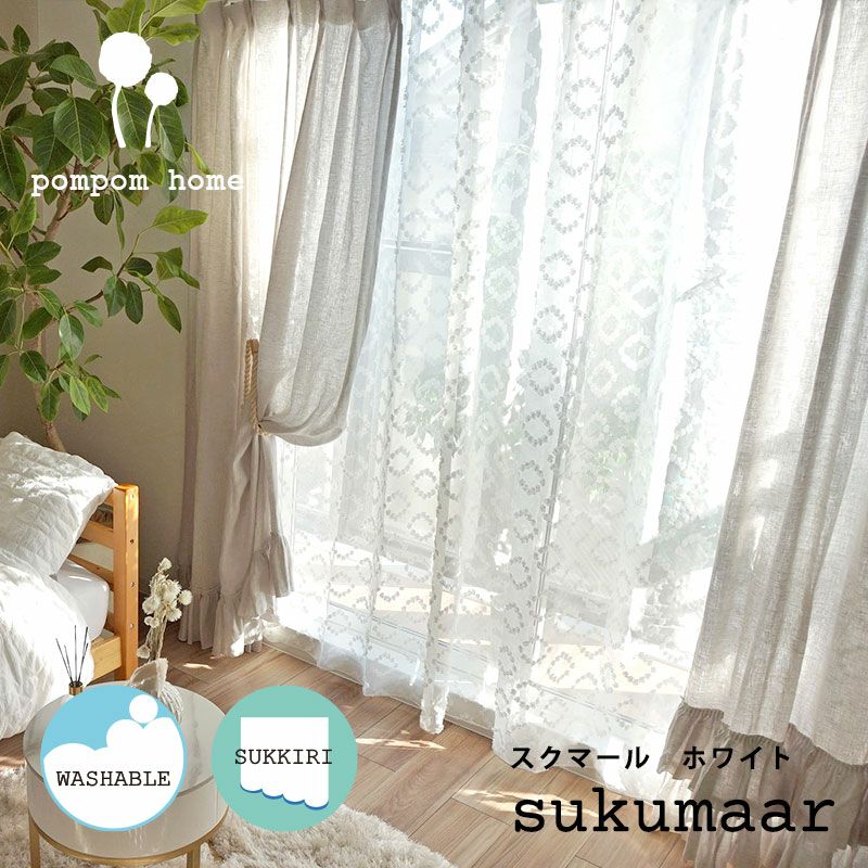 他の画像を見る シームレス 【pom pom home -ポムポムホーム-】裾スッキリ!ポンポンのモチーフが可愛いレースカーテン<sukumaar -スクマール ホワイト->※シェード非対応生地です 販売価格 ¥ 5,500 税込 ふんわり♪フワフワのポンポンが可愛いレースカーテン 詳細を見る お気に入りに登録する
