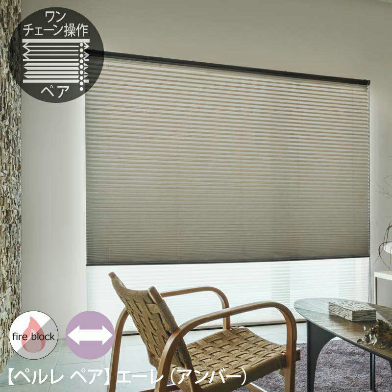 1台2役!コットンやリネンのような素材感のプリーツスクリーン<PELRE ペルレ ペア [サブレ]>おすすめペア ■ワンチェーン操作 ※代引不可