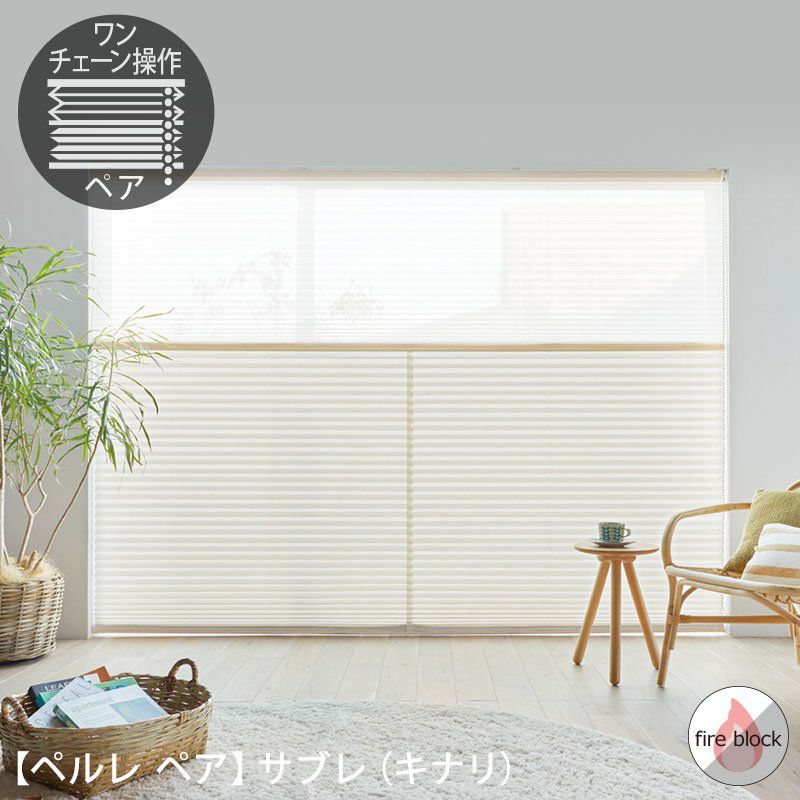 1台2役!コットンやリネンのような素材感のプリーツスクリーン<PELRE ペルレ ペア [サブレ]>おすすめペア ■ワンチェーン操作 ※代引き不可