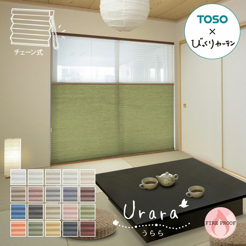 他の画像を見る 非遮光 防炎 代引不可 送料無料 送料無料★和紙調・日本製TOSOコラボの一台二役のオリジナルプリーツスクリーン<Urara うらら>ツイン■ワンチェーン式 ※代引不可 販売価格 ¥ 20,900 税込 送料無料でお買い得。TOSOとびっくりカーテンがコラボした、日本製で高品質なプリーツスクリーンの便利なツインタイプです。和紙調生地に豊富な20色のカラーラインナップからお好みのカラーをお選びください。 詳細を見る お気に入りに登録する