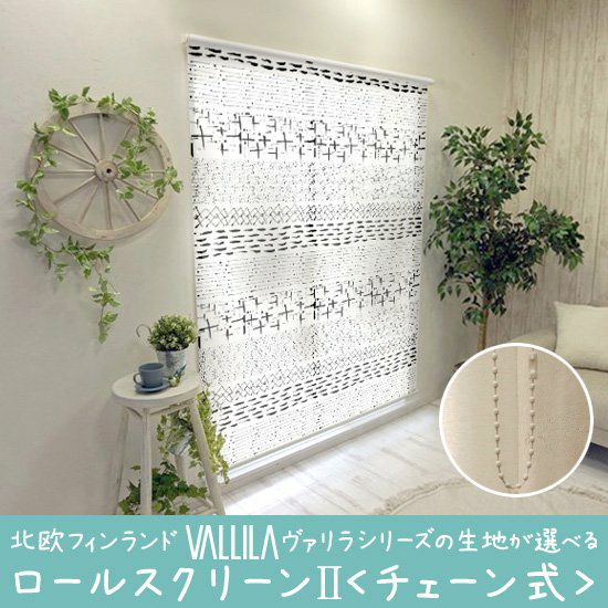 日本製ロールスクリーン<ラルクシールド>リズミカルな配色のノルディックデザイン【ノッカ】プルコード・ワンタッチチェーン操作※代引不可