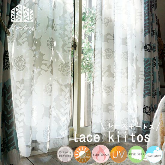 他の画像を見る オリジナル 遮熱・保温 遮像 防炎 UVカット 【 NORDAY -ノルデイ- 】当店オリジナル!北欧テイストの遮像・遮熱・防炎・UVカットレース <レースキートス> 販売価格 ¥ 6,820 税込 【 NORDAY -ノルデイ- 】当店オリジナル!北欧テイストのおしゃれな高機能レースカーテン 詳細を見る お気に入りに登録する