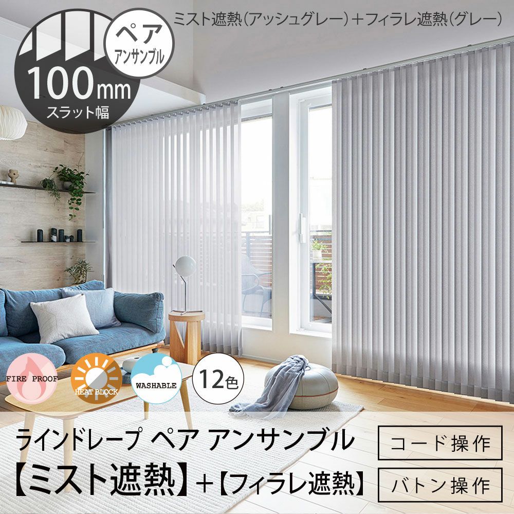 他の画像を見る 非遮光 防炎 ミラー UVカット 代引不可 日本製・1台2役・厚地とレースが遮熱生地でさらに快適に タテ型ブラインド<ラインドレープ ペア アンサンブル>【ミスト遮熱+フィラレ遮熱】100mm幅(バトン操作・コード操作)※代引不可 販売価格 ¥ 44,660 税込 【LINE DRAPE - ラインドレープ】24色から選べる!厚地もレースも遮熱生地で省エネ!お買い得な縦型ブラインド<ミスト遮熱+フィラレ遮熱>ペア アンサンブル・100mm幅 詳細を見る お気に入りに登録する