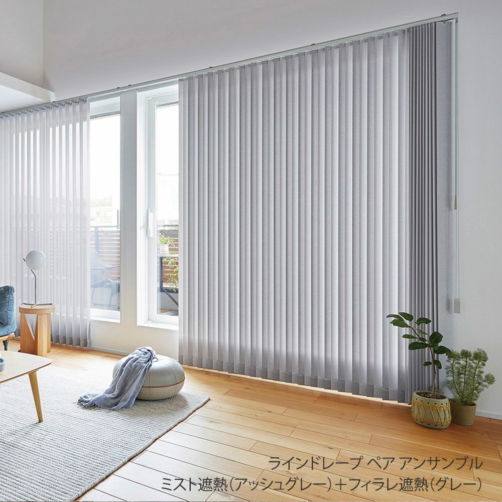 他の画像を見る 非遮光 防炎 ミラー UVカット 代引不可 日本製・1台2役・厚地とレースが遮熱生地でさらに快適に タテ型ブラインド<ラインドレープ ペア アンサンブル>【マカロンラテ遮熱+フィラレ遮熱】100mm幅(バトン操作・コード操作)※代引不可 販売価格 ¥ 40,040 税込 【LINE DRAPE - ラインドレープ】厚地9色とレース5色から選べる2種類の遮熱生地でさらに快適。お買い得な縦型ブラインド<マカロンラテ遮熱+フィラレ遮熱>ペア アンサンブル・100mm幅 詳細を見る お気に入りに登録する