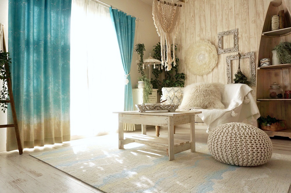 実は同じブルーのカーテンでも、テイストは様々。組み合わせる家具もインテリアも、テイストが違えば全く異なるものになるんです。