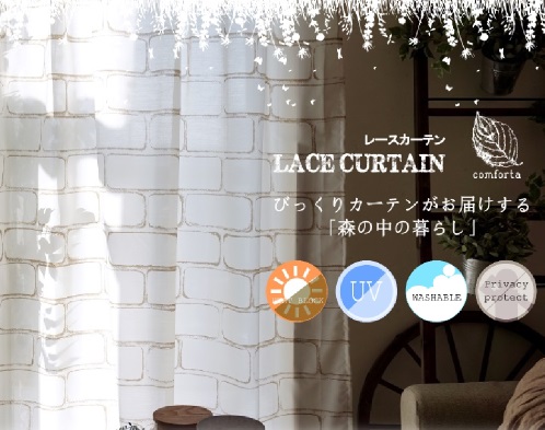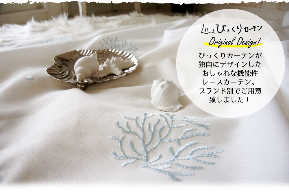 びっくりカーテンのオリジナルデザインの機能レースカーテン。