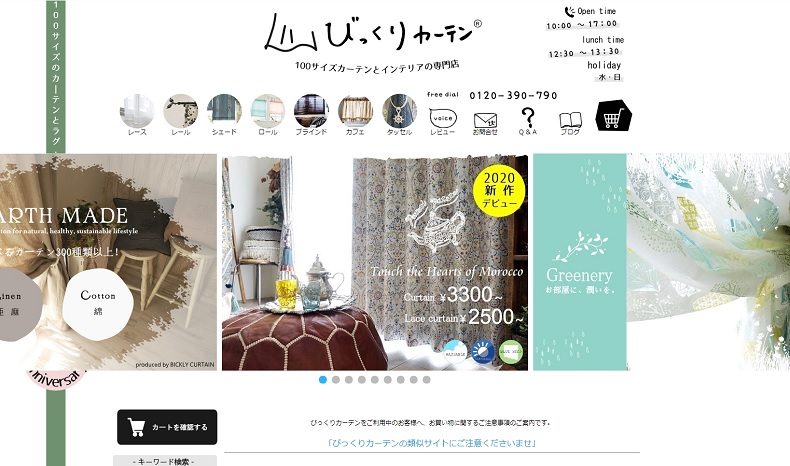 当店は、2009年にオンラインショップからスタートしたお店です。(オンラインショップ:https://www.bicklycurtain.com/)