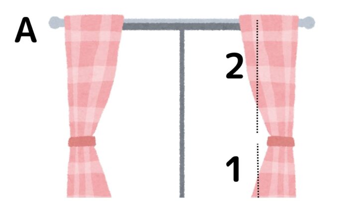 房掛けを製造しているメーカーなどが推奨しているのが、カーテンの総丈を2:1に分けた位置にタッセルを取り付ける計算方法です。