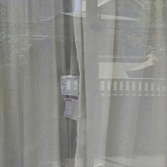 実際に選んだカーテン上記2枚を店頭でコーディネートしてみました👉