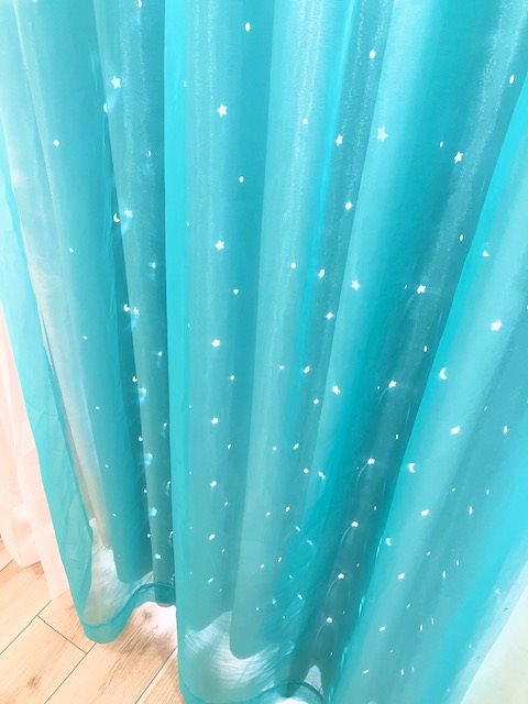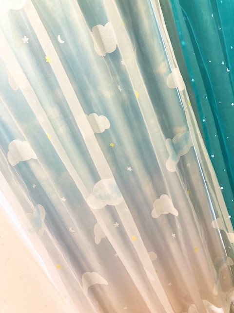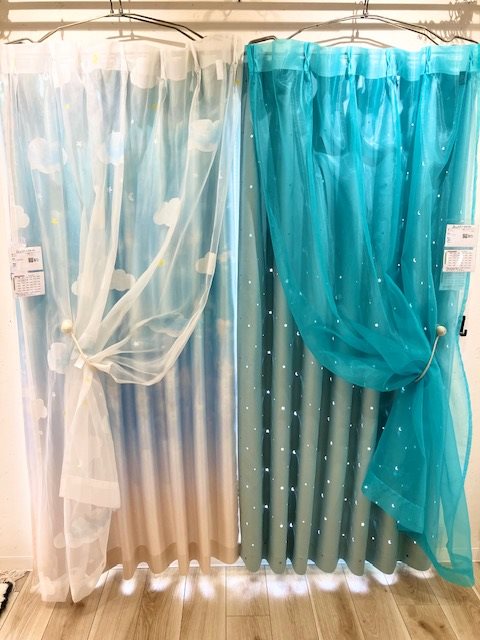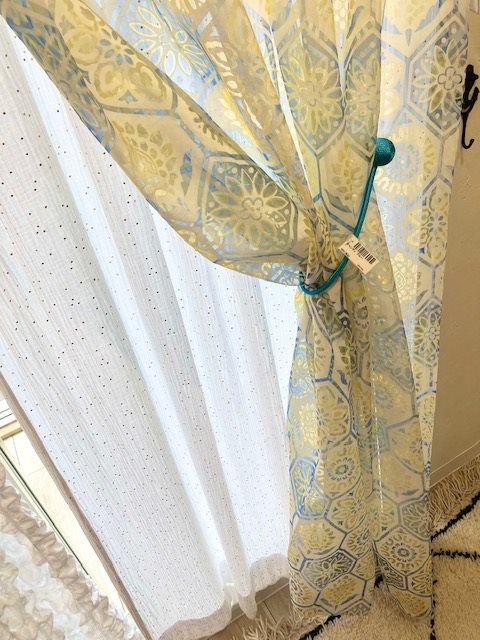 真っ白な非遮光カーテンなので、手前のカーテンがより際立っておりますね😳
