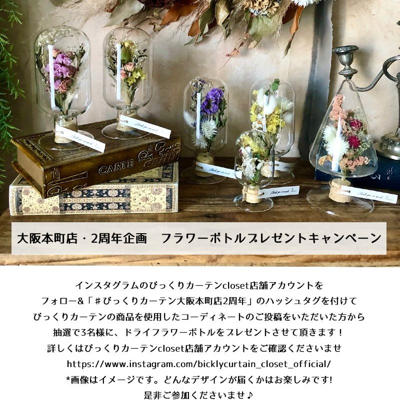また、期間中インスタグラムのびっくりカーテンcloset店舗アカウントをフォロー&「びっくりカーテン大阪本町店2周年」