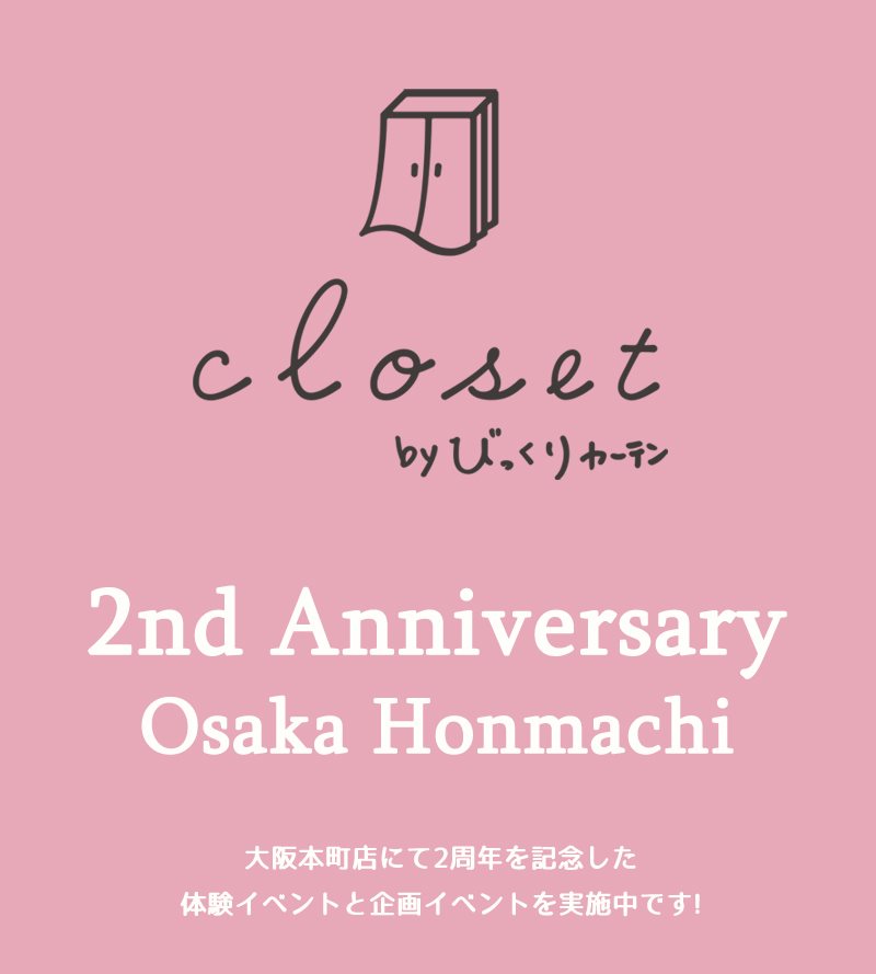 今回、びっくりカーテンcloset大阪本町店は2周年記念と致しまして、