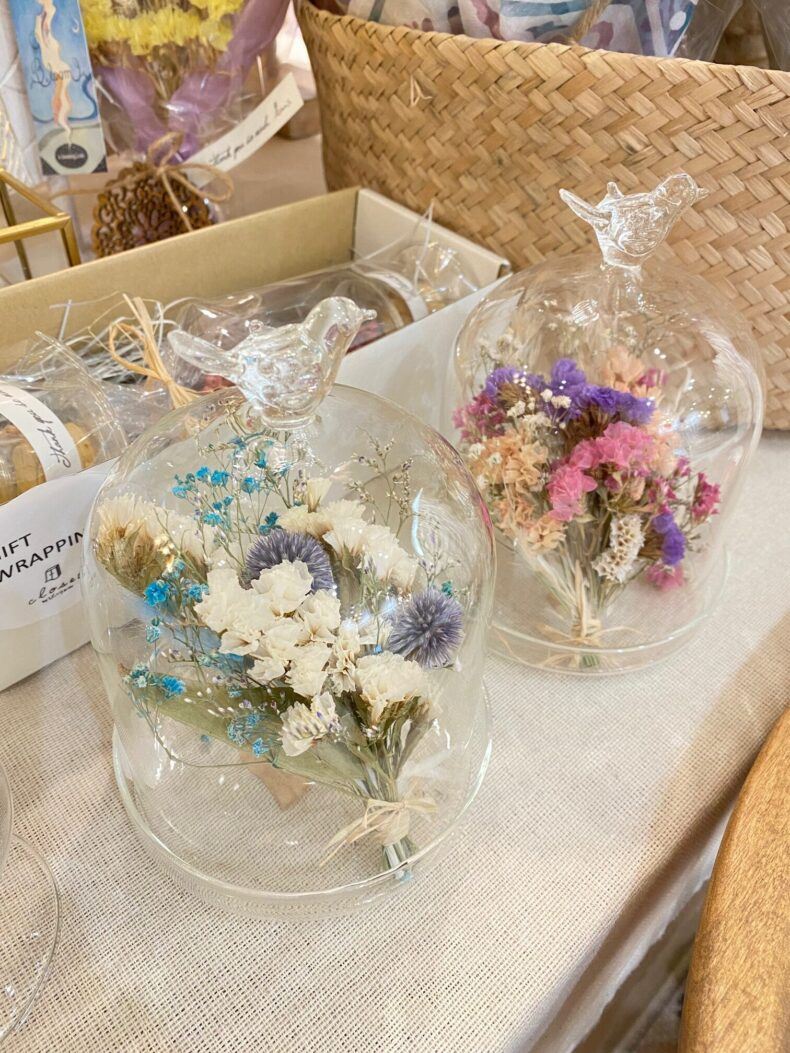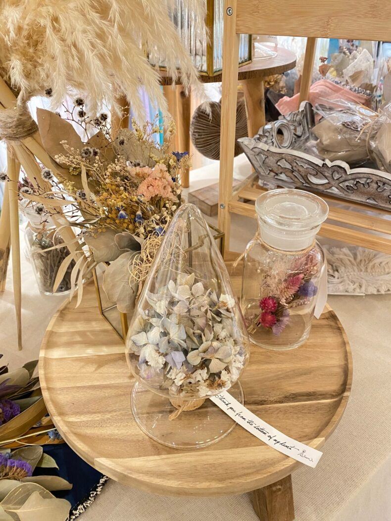 大阪本町店ではびっくりカーテンの姉妹店ドライフワラー専門店 ブルーム のボトルフラワーやブーケやスワッグ・