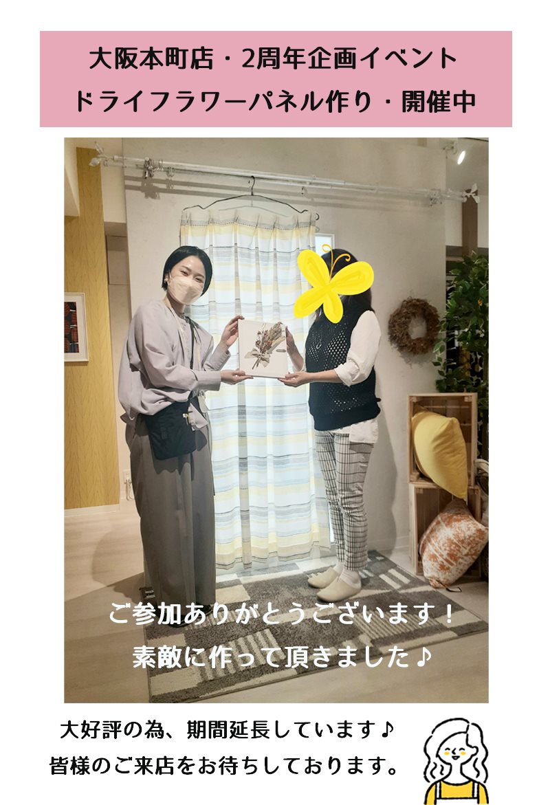 大阪本町店で開催中!ワークショップとドライフラワー受注会のお知らせです♪