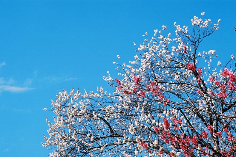 空の青がお花の色味を鮮やかに強調してくれて華やかな印象をより際立たせてくれてます。