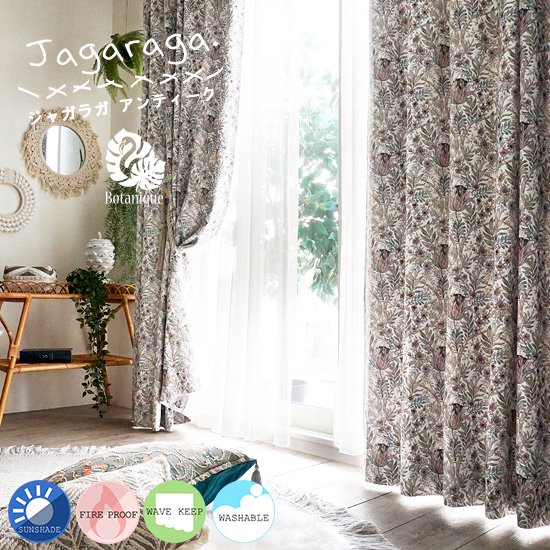 【 BOTANIQUE -ボタニークシリーズ- 】 おしゃれなボタニカルデザインの遮光カーテン <ジャガラガ アンティーク>
