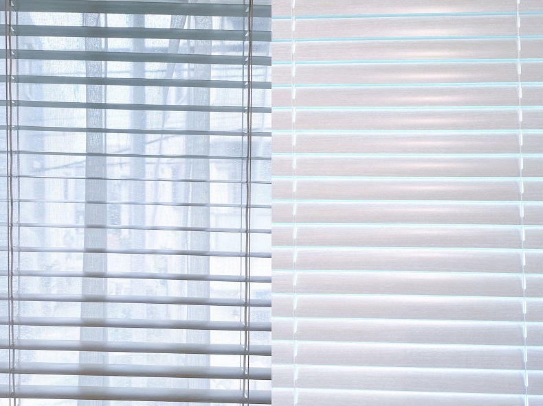 (木製ブラインド・ルモックにはアンティークホワイト、アルミブラインド・アルティにはホワイトグレイン木目を使用しております)