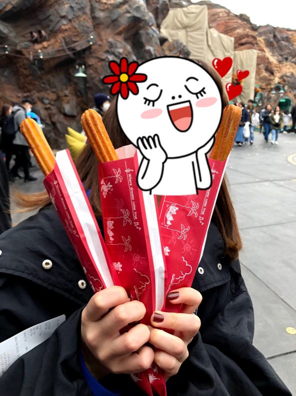 チュロス全部食う気か?ってゆうくらいの友人B。