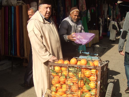 現地モロッコ人は、オレンジを1回に1kg、2kgとまとめて買います。