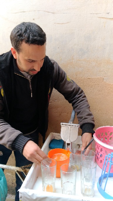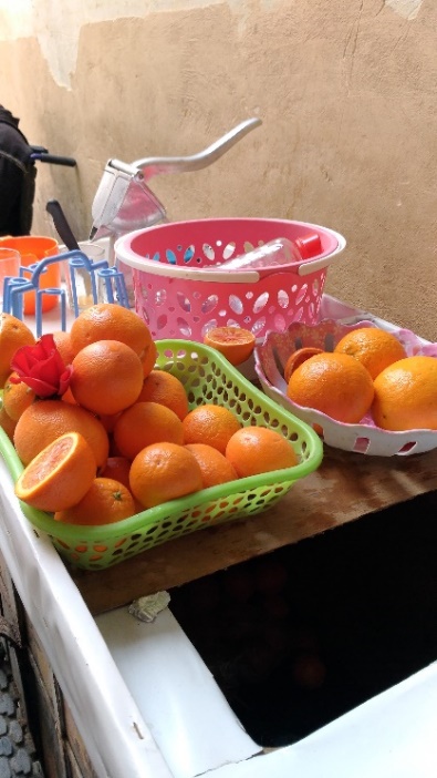 モロッコでは道端にオレンジジュース屋さんがところどころに出ているので、