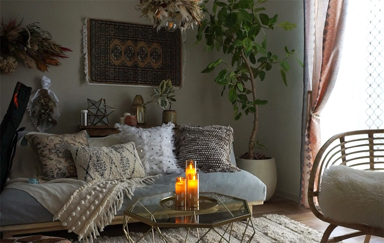 ウォールデコと照明で背景も抜かりなくおしゃれに
