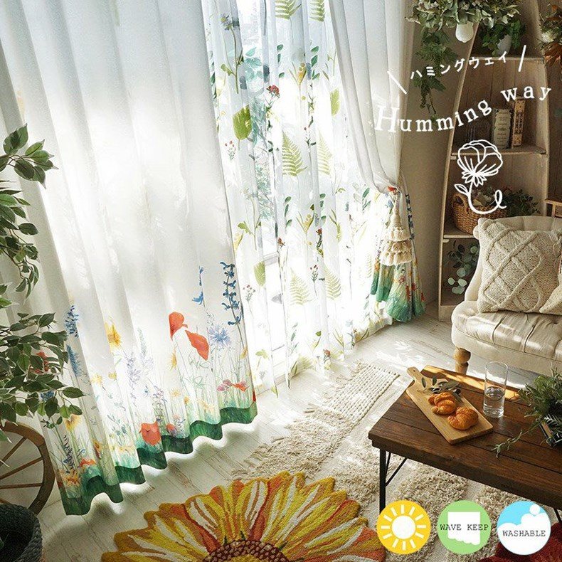 【 BLOOM -ブルーム- 】みずみずしい草花をモチーフにした非遮光オリジナルカーテン<ハミングウェイ>