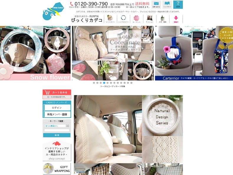 コンパクトカー、軽自動車を中心にご使用いただけるおしゃれで可愛いデザインのカー用品を沢山ご用意しています。