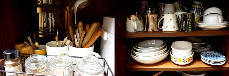 心配の種だった食器棚ですが、よくよく確認すると食器棚と天井の間に突っ張りを設置しており、阪神淡路大震災の後に倒れてきては大変だからと他の家具も含めて対策をしていたことが分かりました。