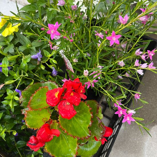 ジニア プロフュージョン、スーパートレニア・カタリーナ、ペンタス、サザンクロスの4種類のお花を植えました。