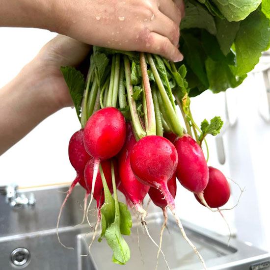 採れたてのはつか大根とサニーレタスは、サラダにしていただきました。