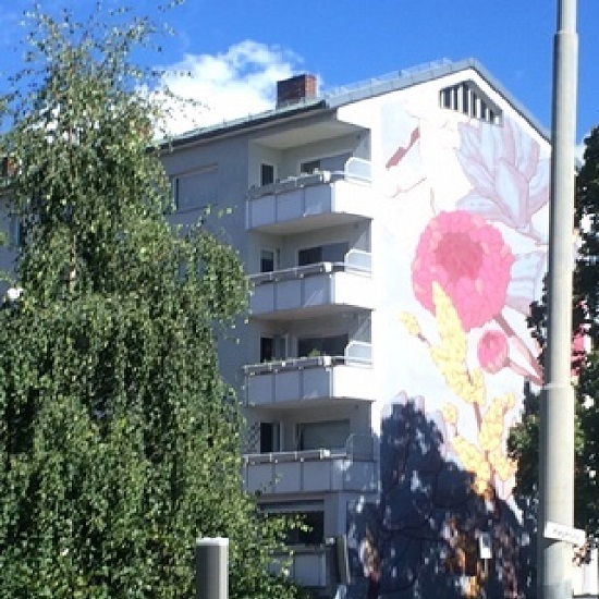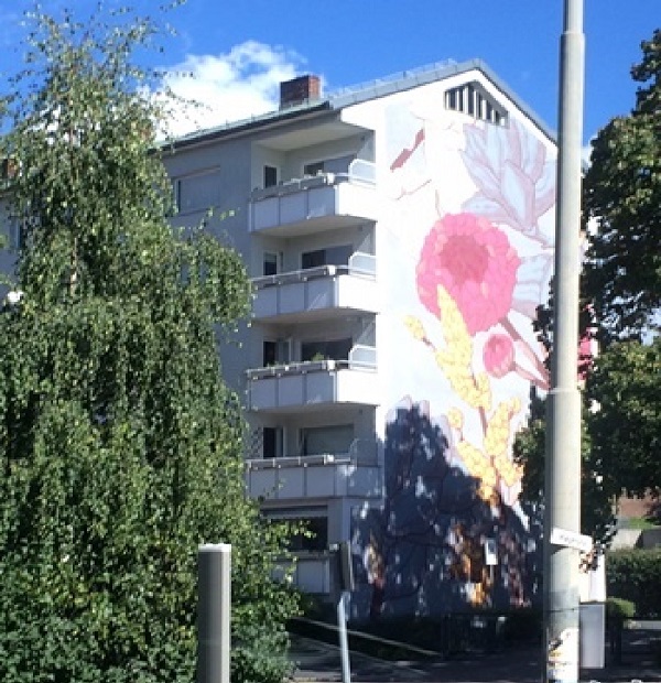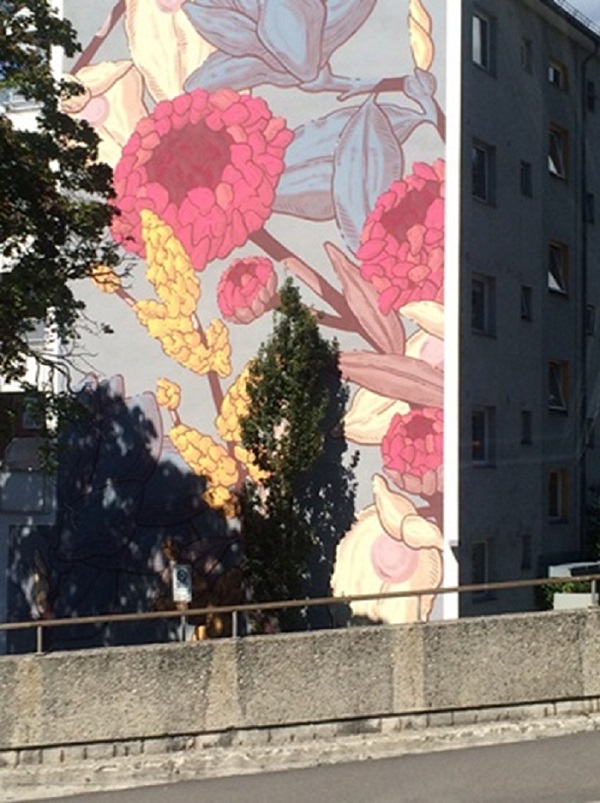 まわりの緑とのコントラストで、より壁面が際立っています。