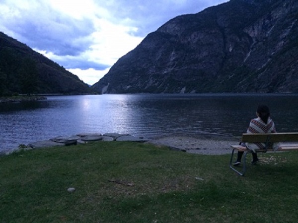 深い山々に囲まれた渓谷の中にある村から延びるフィヨルドは、夜9時過ぎでも白夜の為まだ明るく、澄み渡った幻想的な景色が広がっていました。