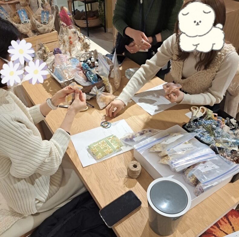 ひとつひとつ全く違った雰囲気のサシェが出来上がり、作った方の個性がしっかり出ておりました✨