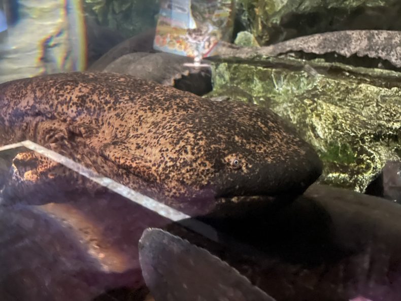 オオサンショウウオはお目目がクリッとしてて、手も小さくて可愛い見た目ですが体長150cmにもなります。