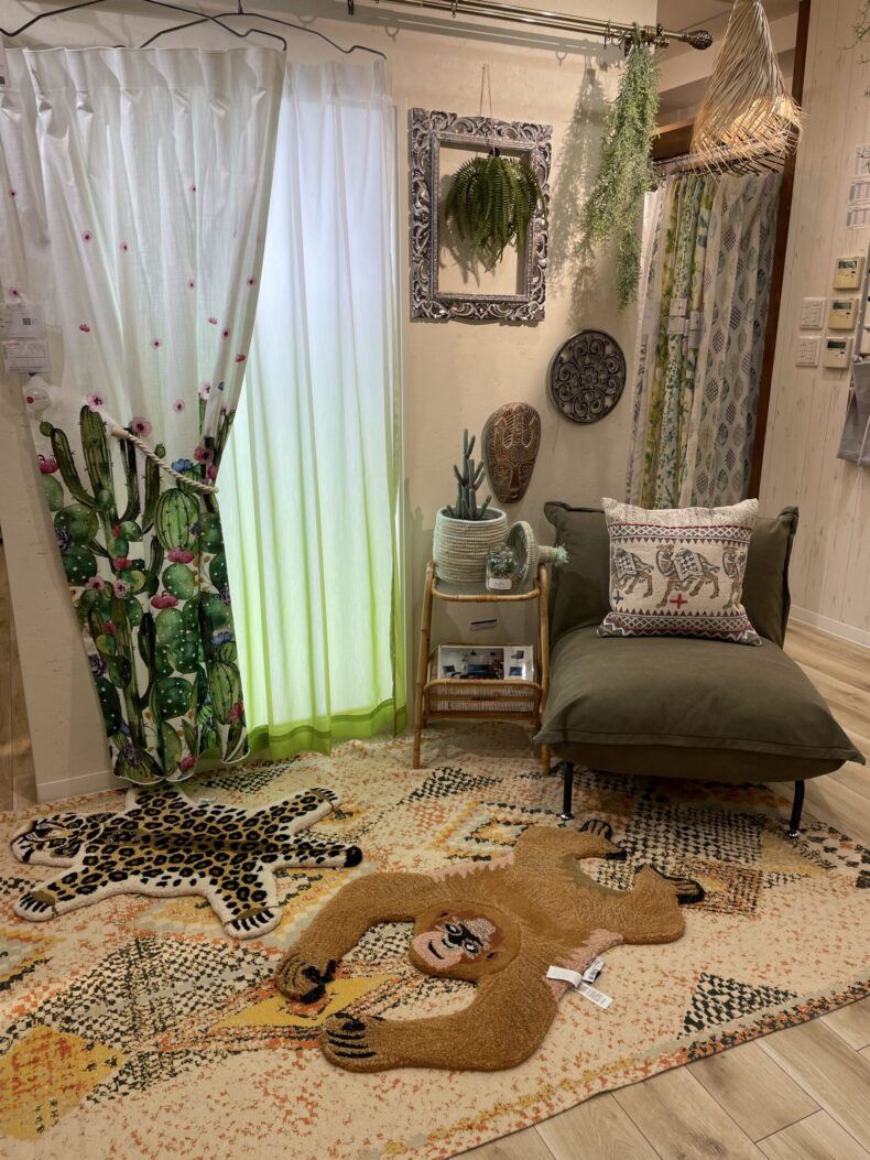 やりすぎるくらいが楽しいので、下記に当店のオリジナルの他所に無いデザインのカーテンを使った部屋のコーディネートをご紹介します!