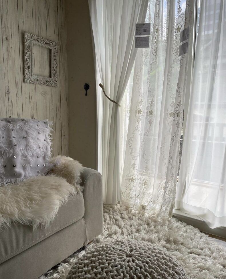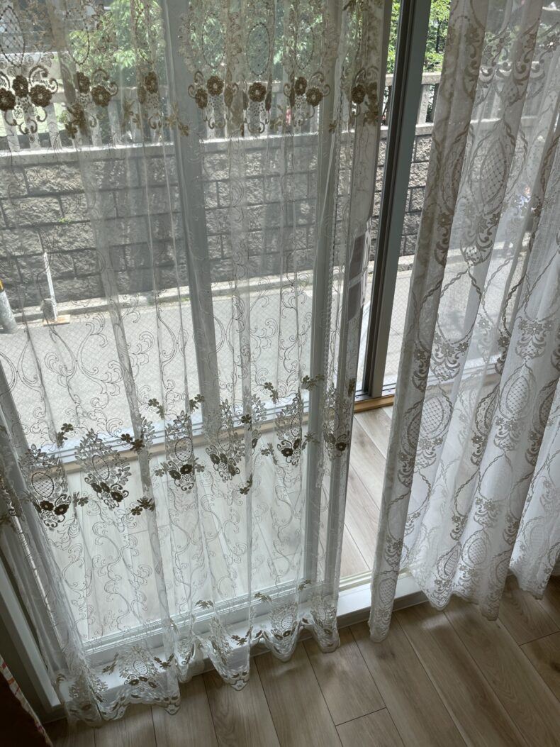 昼間は厚地カーテンを開けておくことが多く、レースがメインで見えている事が多いです。