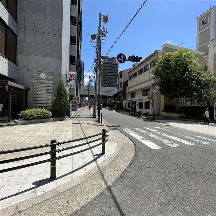 四つ橋筋、長堀通を北に進み、2つ目の信号(右手角にセブンイレブン様)の