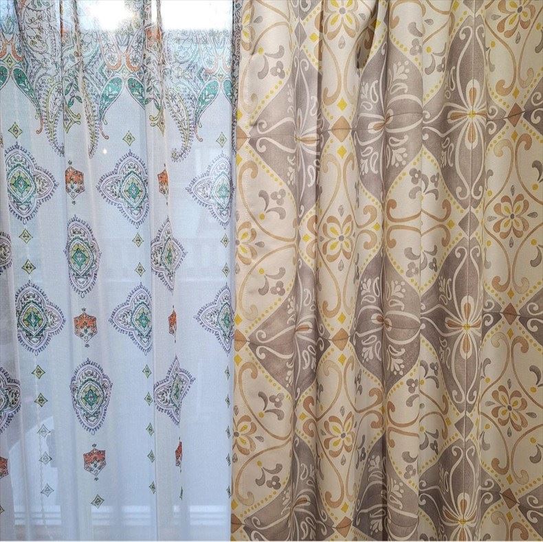 モロッコのシェフシャウエンをイメージした美しいデザインの遮光カーテン。