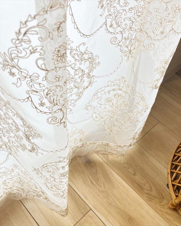 透明感の高い生地に緻密なダマスクデザインが浮かび上がり、