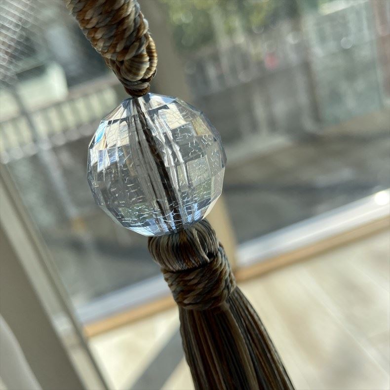 光をうけてキラキラ輝くアクリルデコがきれいなタッセルとなり、