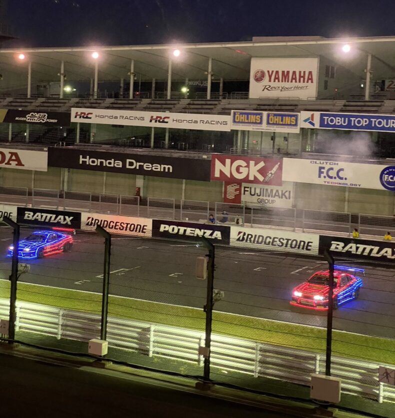 開催前にはサーキット上でプロドライバーによるデモ走行があり、初めて聞く爆音に気分も上がります!