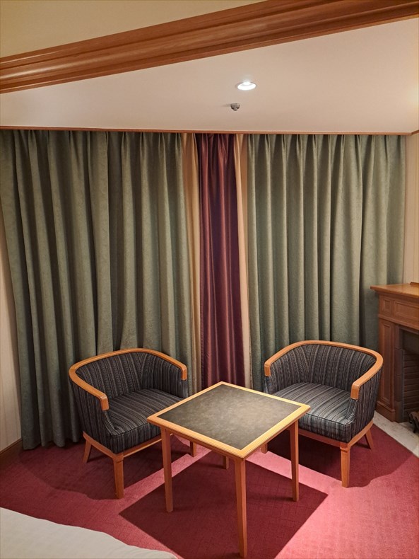 お部屋にはクラシカルな雰囲気にぴったりな重厚感のあるカーテン。