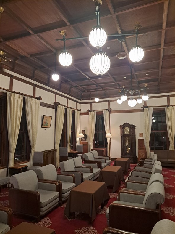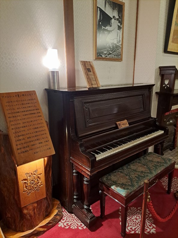 本館ロビーには皇后陛下もメロディをお気に召したと言われる大時計や、アインシュタイン博士が弾いたピアノもありました。
