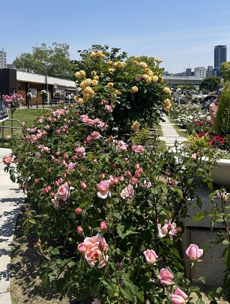 パンケーキを美味しく頂いた後、次の目的地まで歩く途中でバラ園があったので散歩がてら観て回ることに。